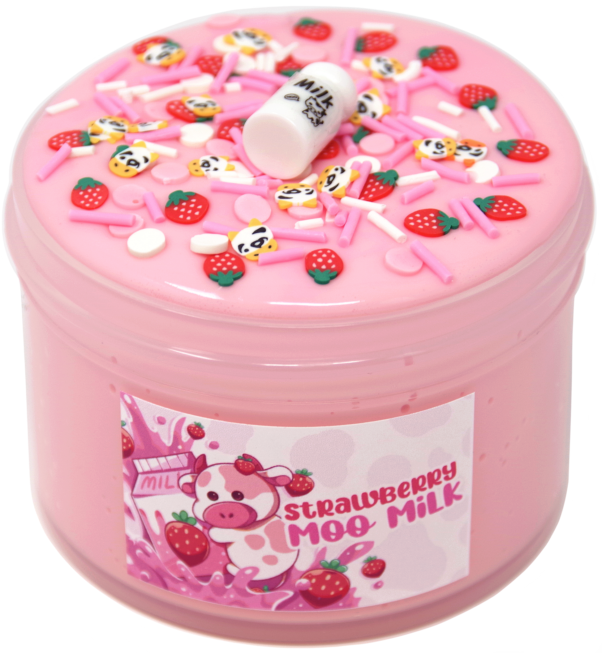 Strawberry Moo Milk is the first slime in our Moo Milk series! This thick and glossy slime makes great pokes and thunderous bubble pops. It’s not ultra thick nor it is loose and thin, this texture is a great medium. It’s such a cute pink colour and super stretchy and silky. It’s deliciously scented like strawberry milk.
